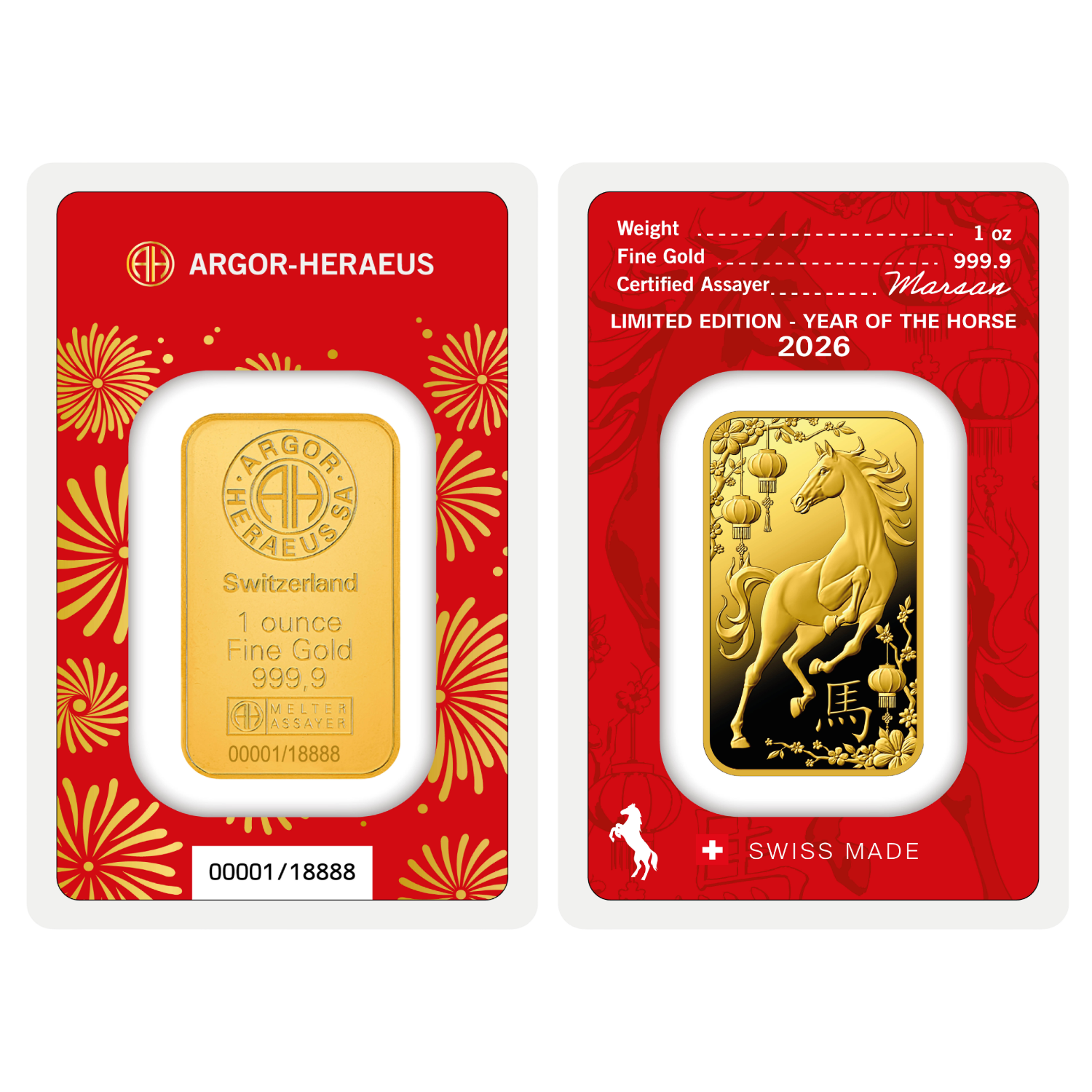 Un raffinato Lingotto d’oro Year of the Horse – Limited Edition 2026, che celebra l’arrivo del nuovo anno del calendario lunare cinese. Questa edizione esclusiva fa parte della prestigiosa serie Lunar Zodiac di Argor-Heraeus, una collezione in tiratura limitata che rende omaggio a una tradizione millenaria, unendo valore simbolico, qualità assoluta ed eleganza senza tempo.
