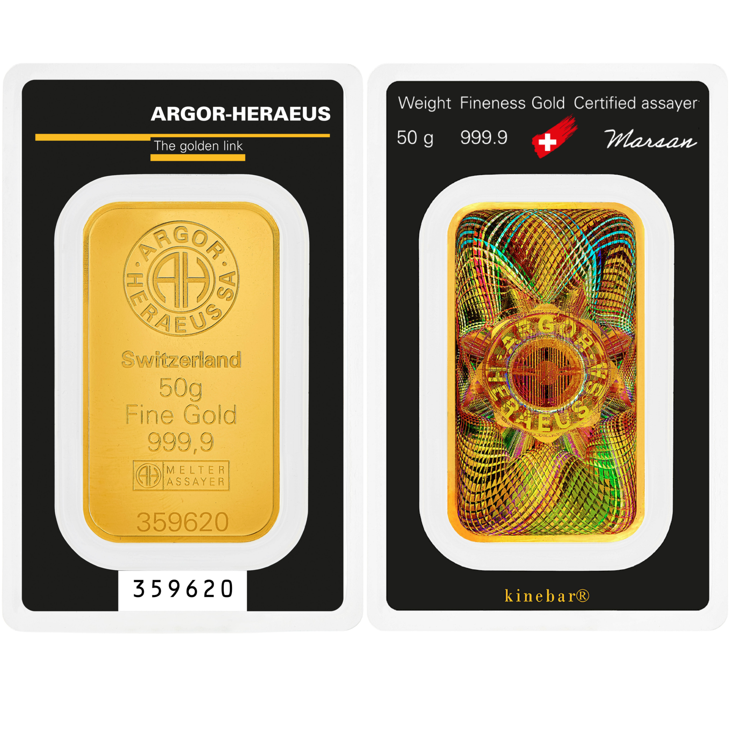 LINGOTTO ORO 50G ARGOR-HERAEUS KINEBAR
